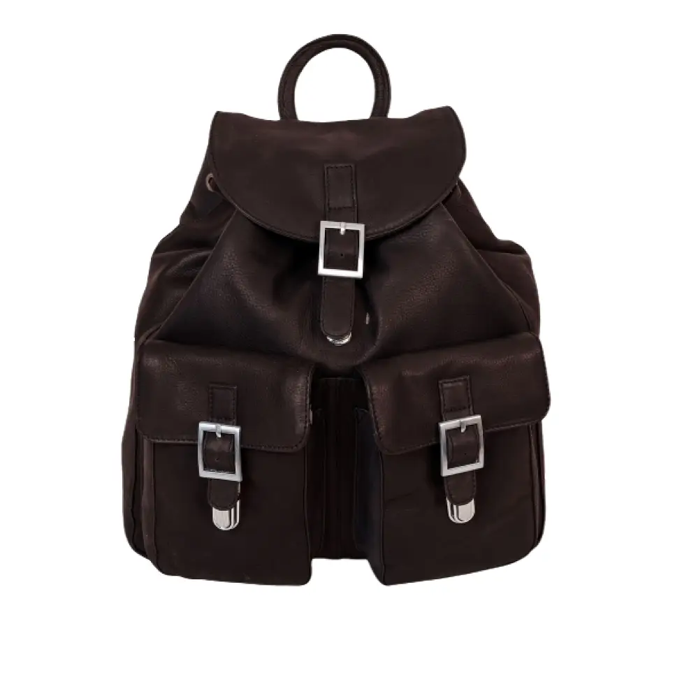 Zeitloser Leder-Rucksack aus weichem Vachetta-Leder für Damen und Herren. Mit zwei Vordertaschen, großem Hauptfach und verstellbaren Riemen – ideal für Alltag, Reise oder Büro.