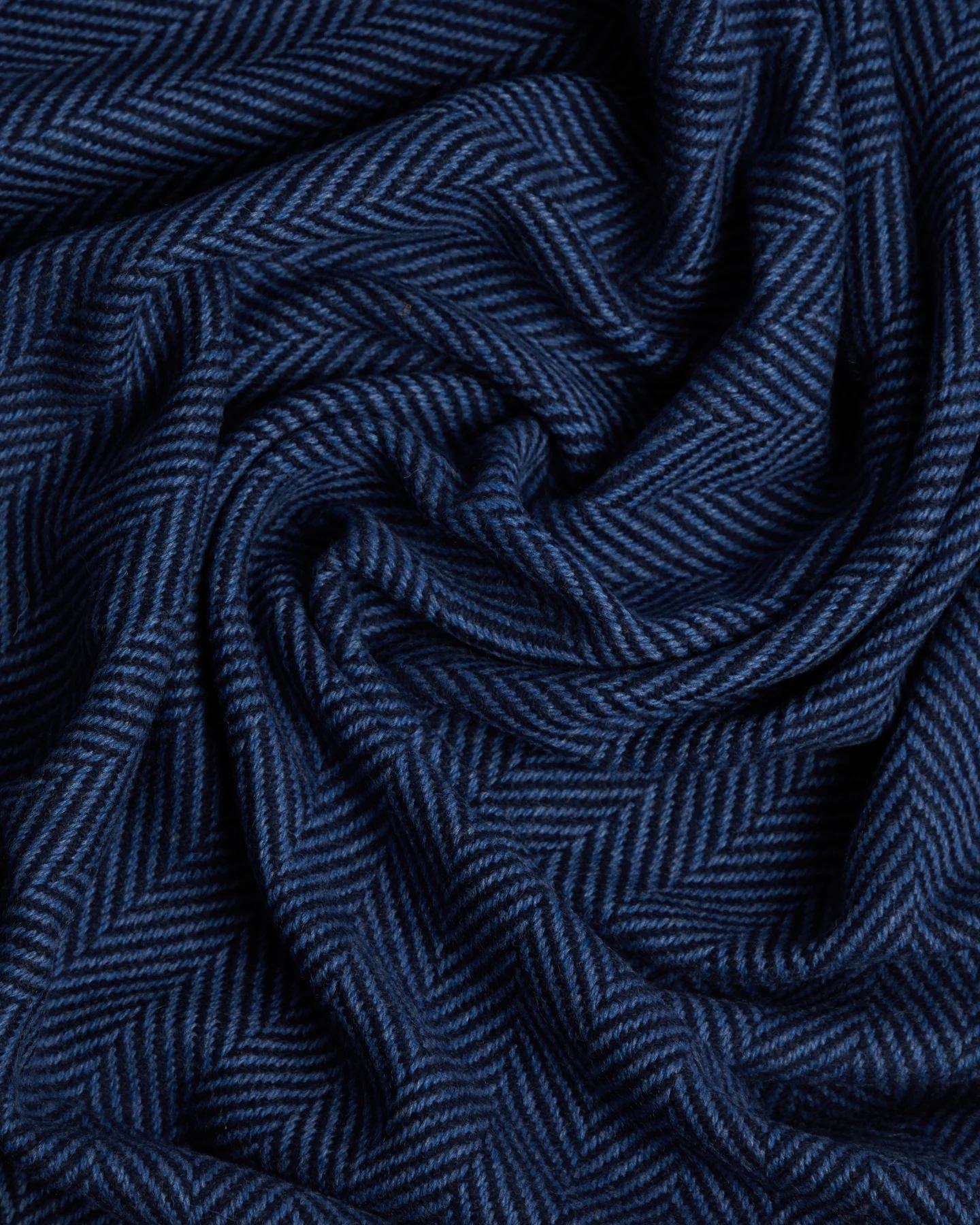 Das klassische Fischgratmuster in tiefem Marineblau und Denim erinnert an die Farben von Meer und Wasser. Die Farbkombination vermittelt Weite, Ruhe und Klarheit. Die Decke wirkt zeitlos, natürlich und bringt ein ruhiges Nordseegefuehl in Ihr Zuhause.