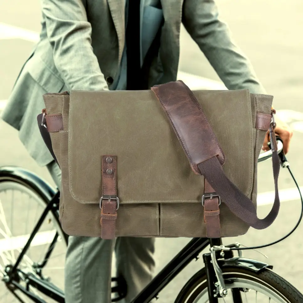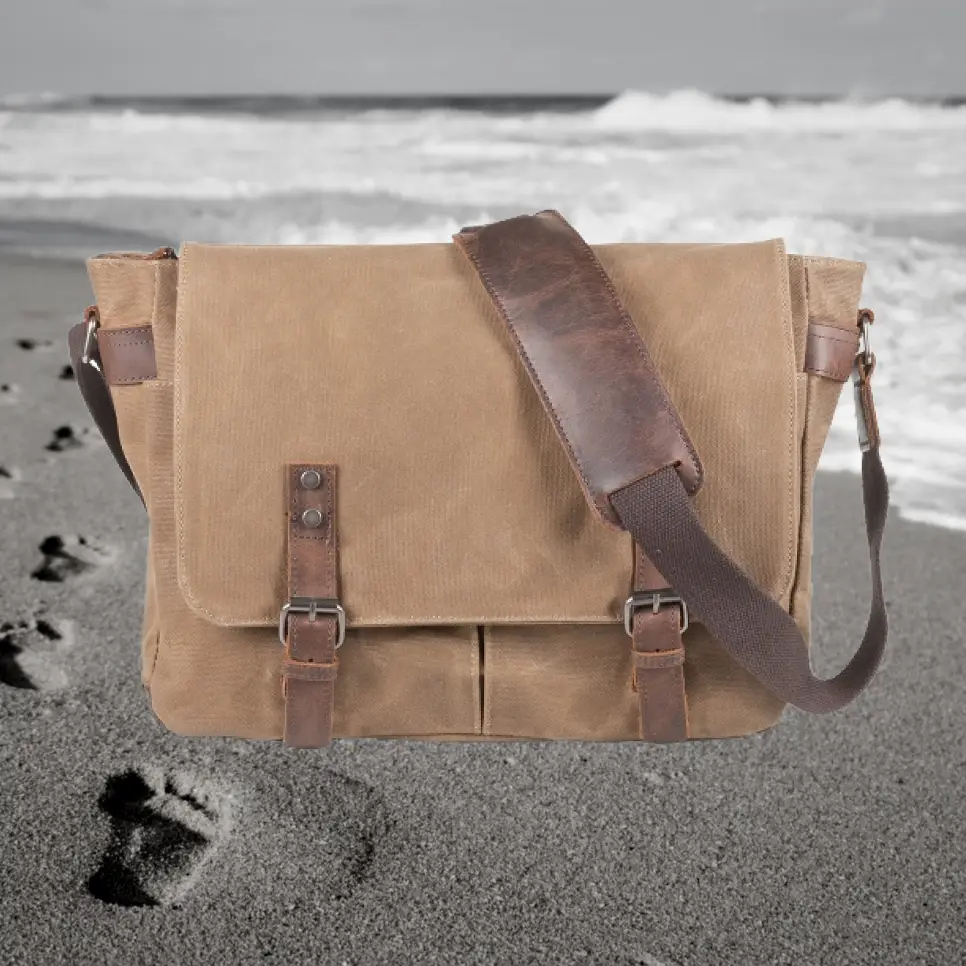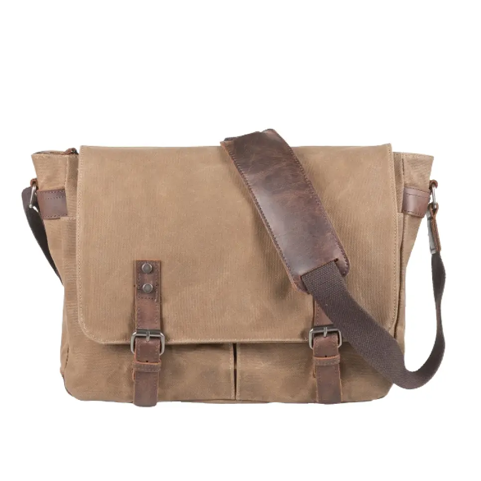 Robuste Messenger Bag aus gewachstem Canvas mit Leder – geräumig, praktisch und ideal für Alltag, Freizeit und Beruf.