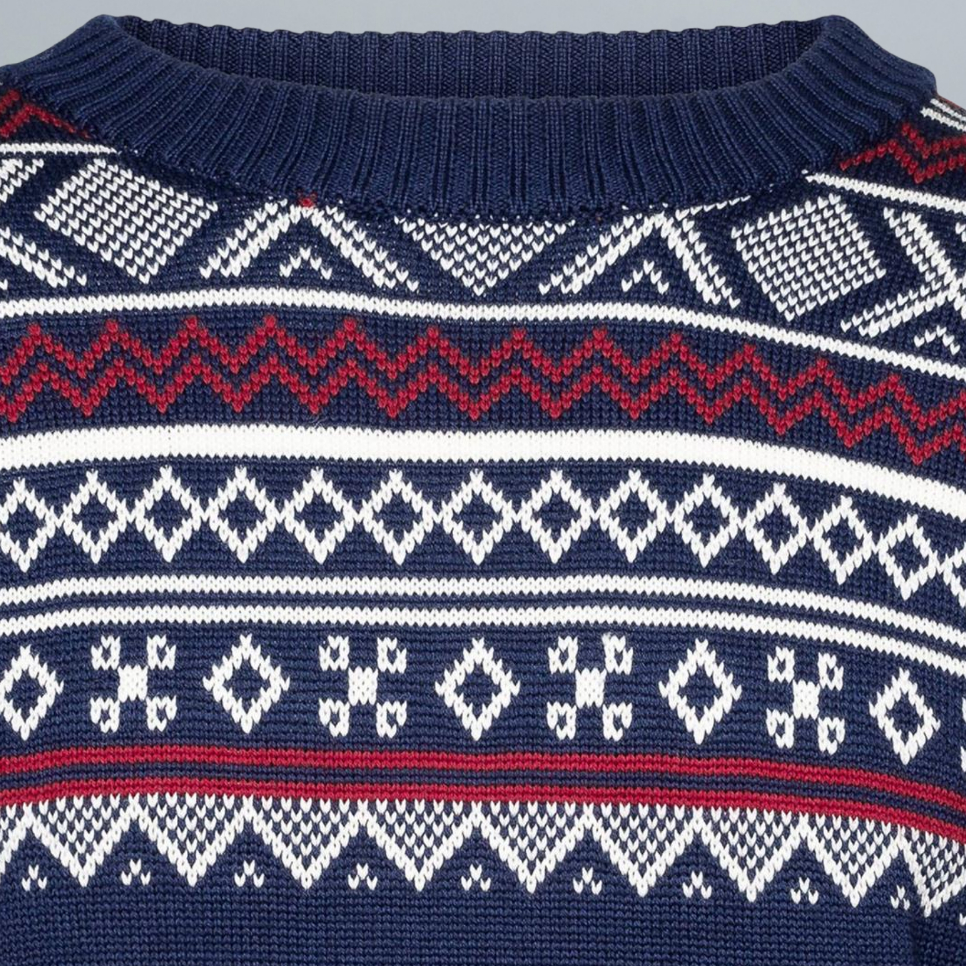 Dieser Norwegerpullover aus 100 % feiner Merinokammwolle ist leicht und atmungsaktiv, während er gleichzeitig angenehm warm bleibt. Mit klassischem Muster und rundem Halsausschnitt bietet er zeitlosen Stil und hohen Komfort für Damen und Herren.