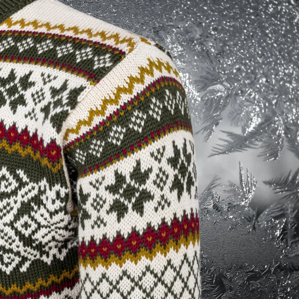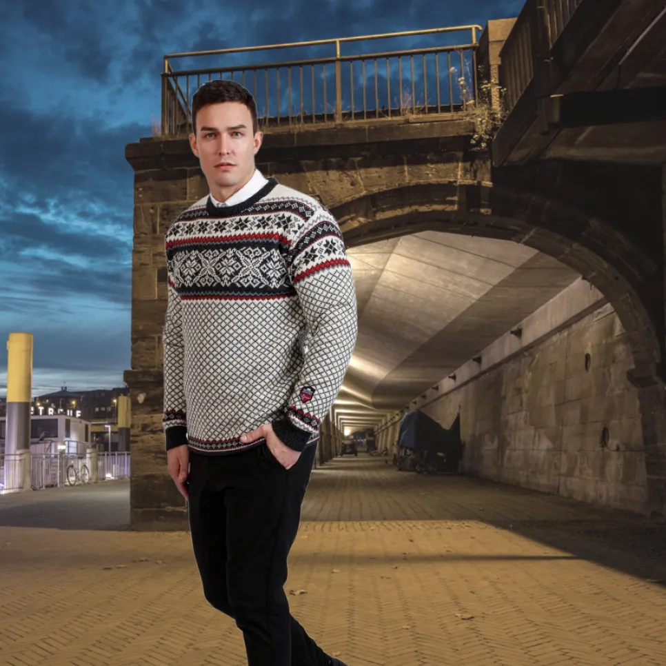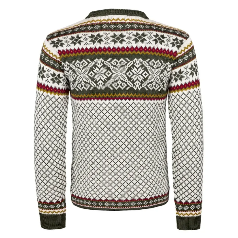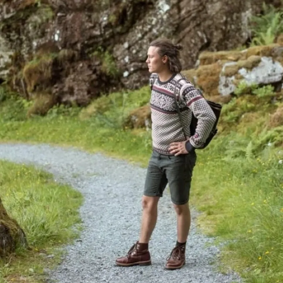 Osterøy ist ein unisex Rundhals-Pullover aus 100 % norwegischer Schurwolle. Er kombiniert klassisches Muster, dichten Jacquard-Strick und alltagstauglichen Komfort. In Norwegen gefertigt, warm, atmungsaktiv sowie langlebig – für Arbeit, Freizeit und Reise.