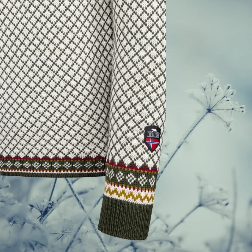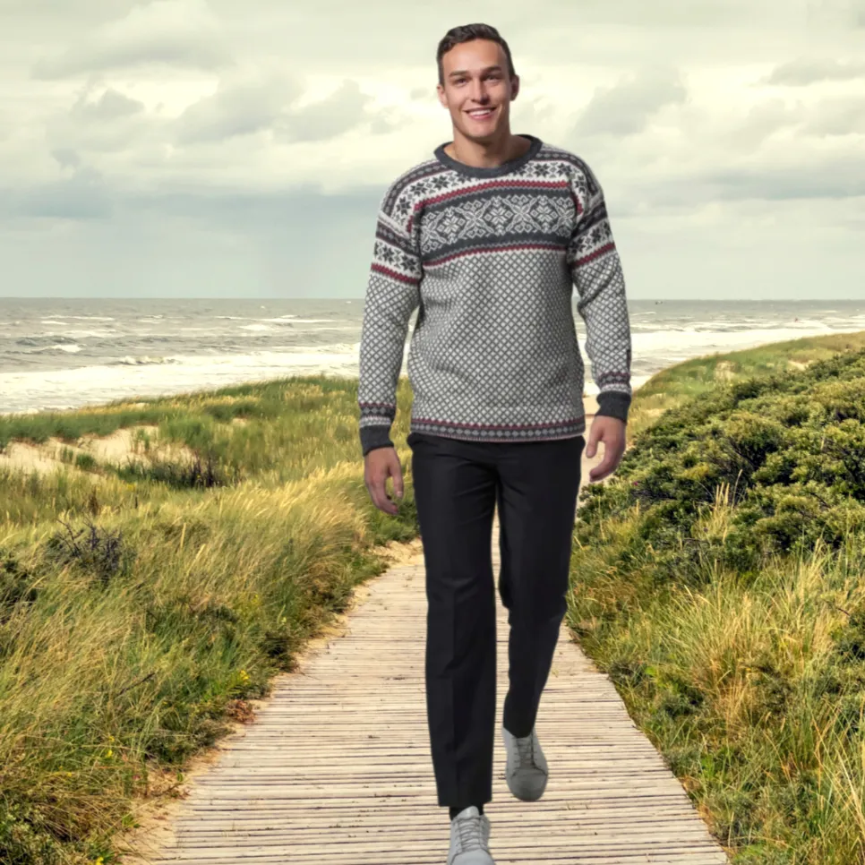 Dieser Norweger Pullover Unisex aus 100 % norwegischer Schurwolle vereint traditionelles Design mit modernem Tragekomfort für Damen und Herren.