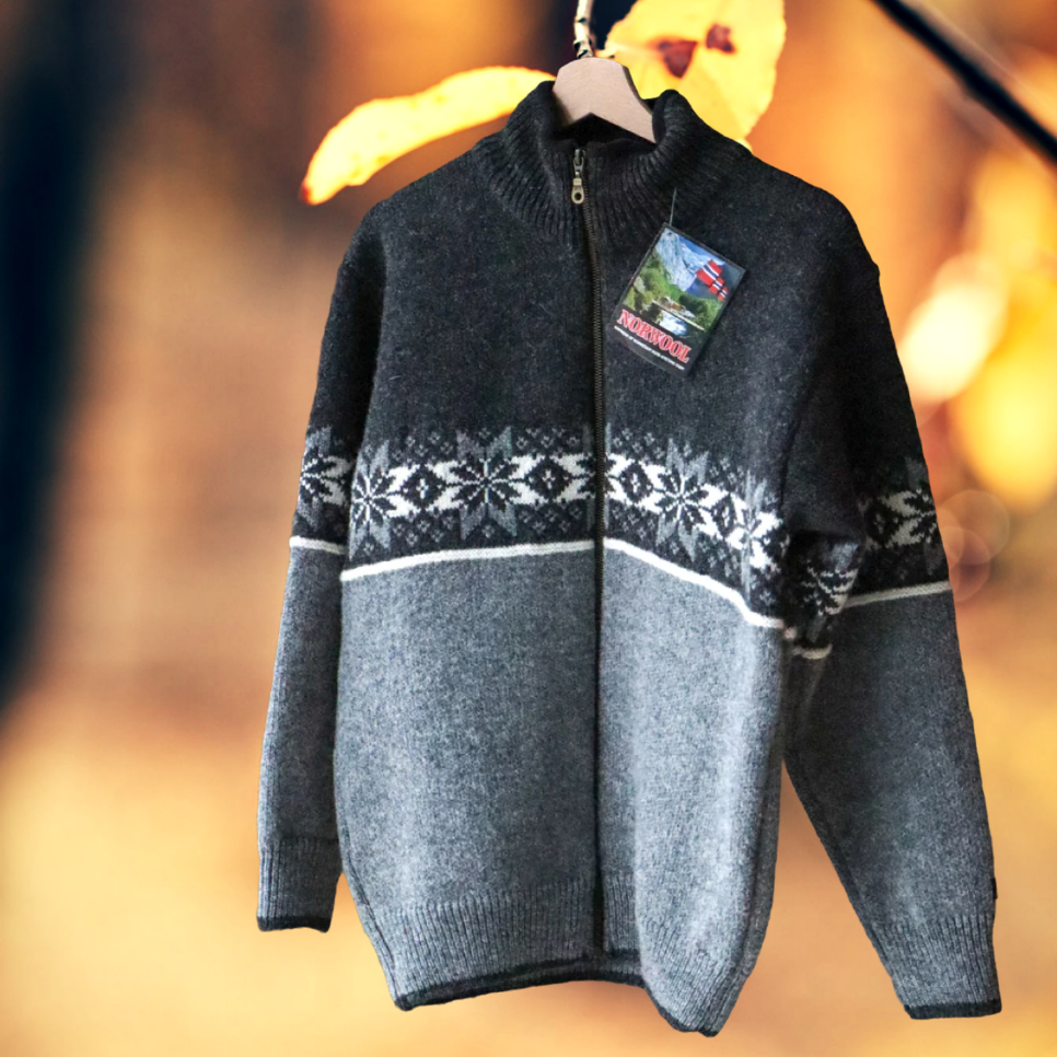 Norweger Wolljacke Unisex – 100 % Schurwolle – Reißverschluss – Norwool